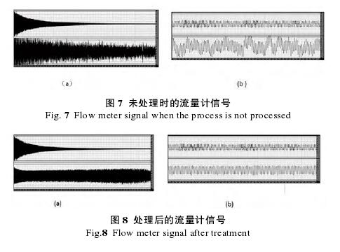 圖 7(b)為展開(kāi)的視圖。圖 8 為處理后流量計(jì)輸出的傳感器信號(hào)和放大器輸出信號(hào)。圖 8(a)上部為傳感器輸出的原始信號(hào),下部為放大器輸出信號(hào);