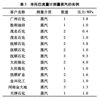 參照其他企業(yè)畢托巴流量計測量低壓蒸汽的成功經(jīng)驗,如表3所示,確定該低壓蒸汽計量采用的流量計為遼寧畢托巴科技有限公司生產(chǎn)的畢托巴蒸汽流量計。