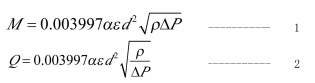 差壓式流量計測量流體流量是利用流體的動靜壓轉換原理進行的。所遵循的方程為伯努力方程。以孔板為例,其數(shù)學模型為:
