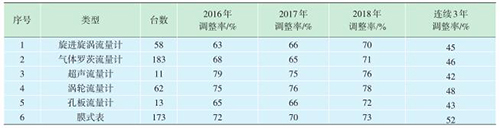 在2017年的工作基礎(chǔ)上,對(duì)2018年送檢的氣體流量計(jì)進(jìn)行了抽查,并按不同類型進(jìn)行了統(tǒng)計(jì)(表2)。