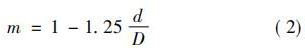式中: 珋v 為旋渦發(fā)生體兩側(cè)平均流速,m / s; d 為旋渦發(fā)生體特征寬度,m; Sr 為斯特勞哈爾常數(shù),無量綱常數(shù); V 為管道流體平均流速,m / s; m 為旋渦發(fā)生體兩側(cè)弓形面積與管道截面積之比。 如,對(duì)于寬度為 d 的三角柱,有: