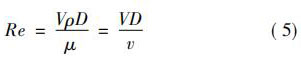 式中: V 與 D 與上文一致; ρ為流體密度,kg /m3 ; μ為流體的動(dòng)力黏度,Pa·s; v 為流體運(yùn)動(dòng)黏度,m2 / s。