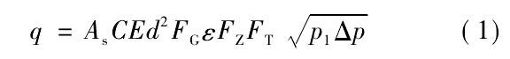 式中,、為標(biāo)準(zhǔn)狀態(tài)下天然氣體積流量,m; /s; A,為秒計量系數(shù),視采用計量單位而定,此處A=311 794 x 10 -6; C為流出系數(shù);E為漸近速度系數(shù);d為孔板直徑,mm; F}為相對密度系數(shù);。為可膨脹系數(shù);F:為超壓縮因子;F:為流動溫度系數(shù);P,為孔板上游側(cè)取壓孔氣流絕對靜壓,Pa;0P為氣流流經(jīng)孔板時產(chǎn)生的壓差,Pao