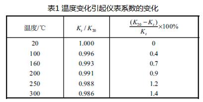 在表1中,Kt/K20表示溫度為t和20℃時(shí)儀表系數(shù)之比,